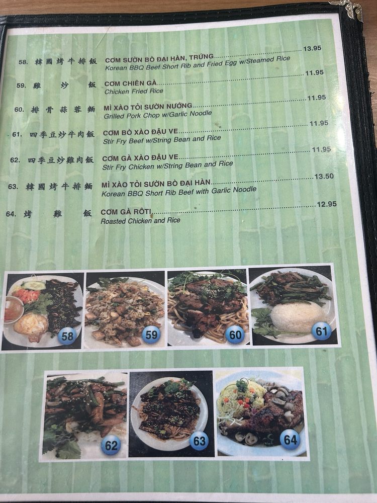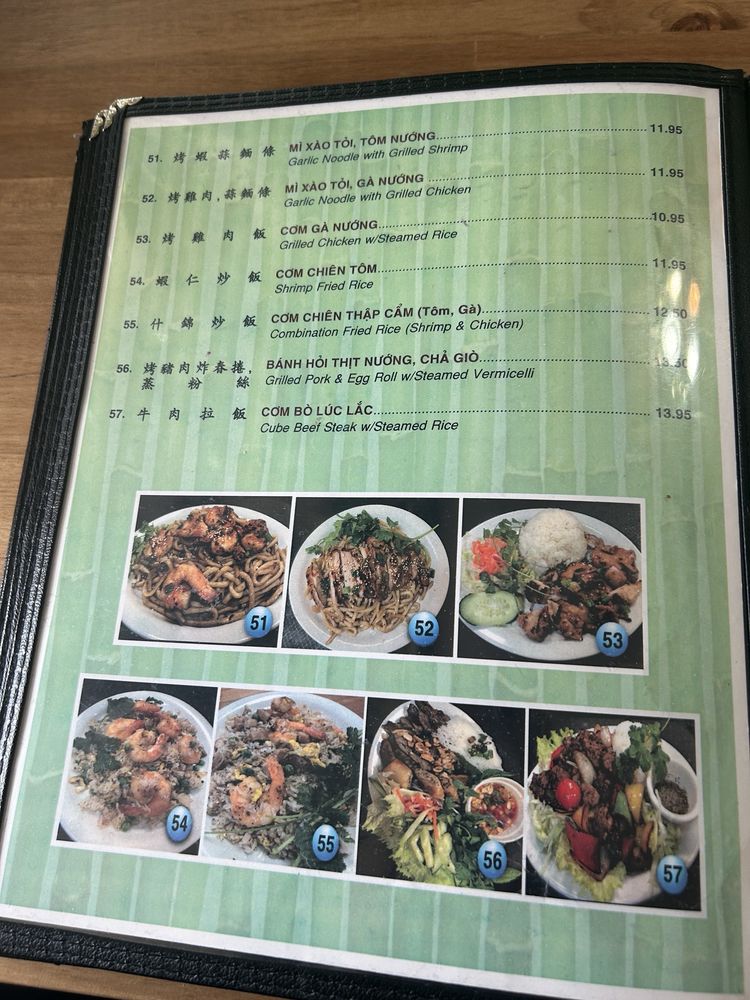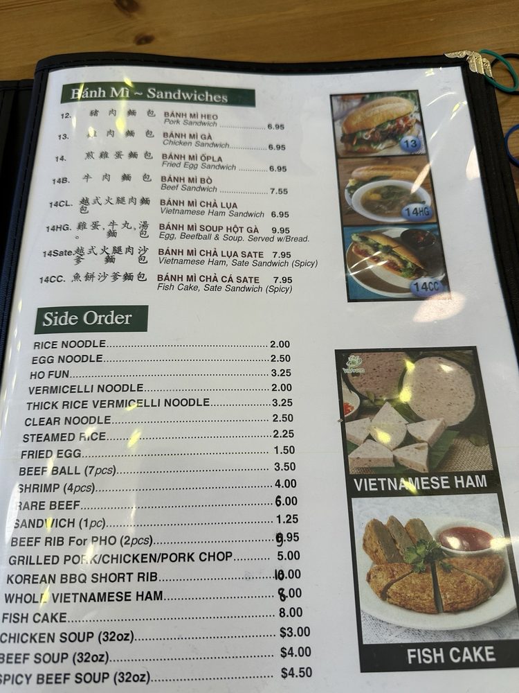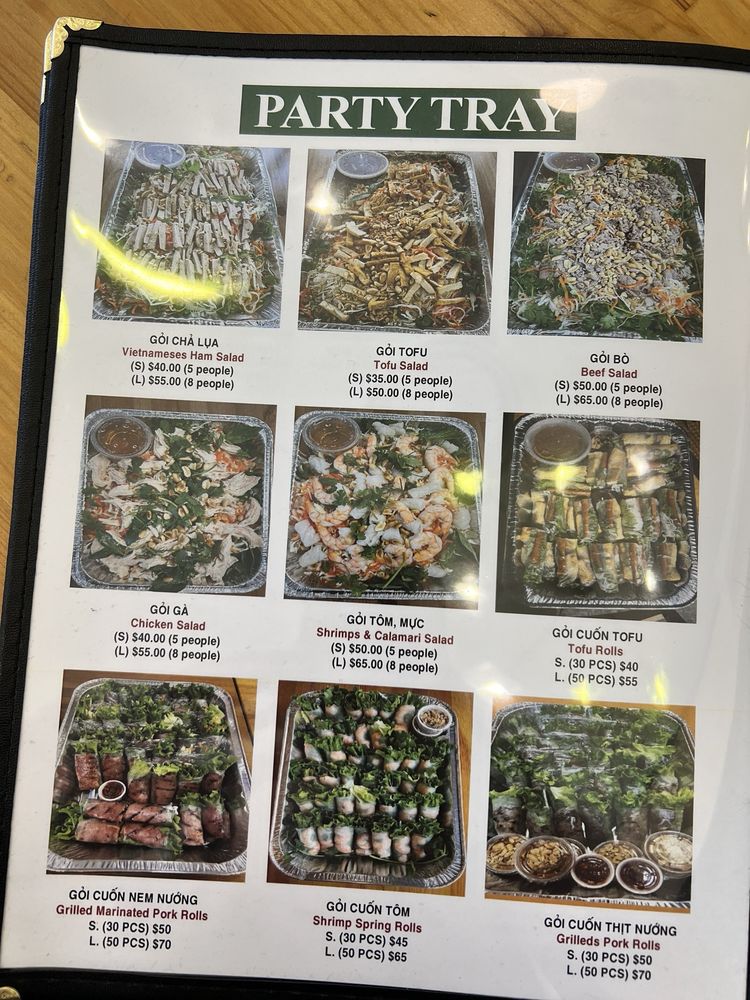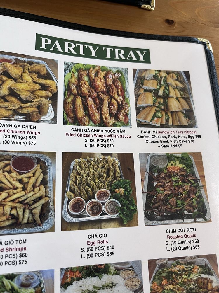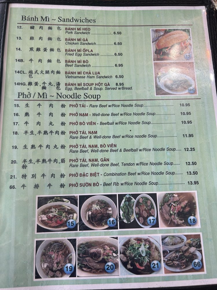 Introducing the menu at Saigon House, located in San Leandro, CA. This Vietnamese restaurant offers a wide range of options, including traditional Khai Vi appetizers like Egg Rolls and Grilled Pork Rolls. Their sandwich selection includes Pork, Chicken, and Beef options, all served on fresh bread. For pho lovers, there are various choices such as Rare Beef, Well-done Beef, and Beefball soups available. Customers praise the homey feel of the restaurant and the generous portion sizes at affordable prices. The Garlic Noodles with Grilled Chicken and Combination Pho are highly recommended for a satisfying meal. The beef broth is flavorful and the ingredients well-prepared. Saigon House provides a comfortable dining experience with both indoor and outdoor seating options. This is a must-visit spot for Vietnamese cuisine enthusiasts.
